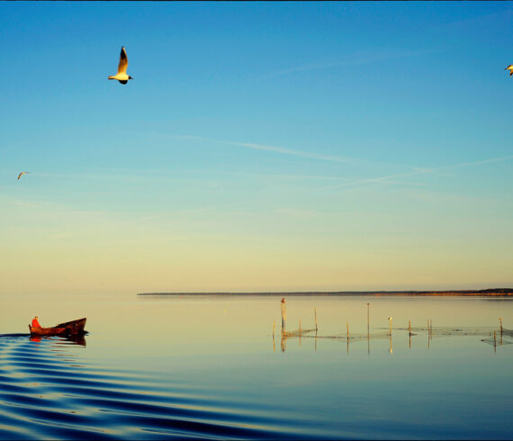 Abendstimmung am Stettiner Haff. Ein Ausflug während eines Fortbildungs-Seminars in Neubrandenburg. Wir hatten Glück mit dem schönen Wetter und der tollen Lichtstimmung. Und dann kam auch noch der Fischer zur richtigen Zeit.