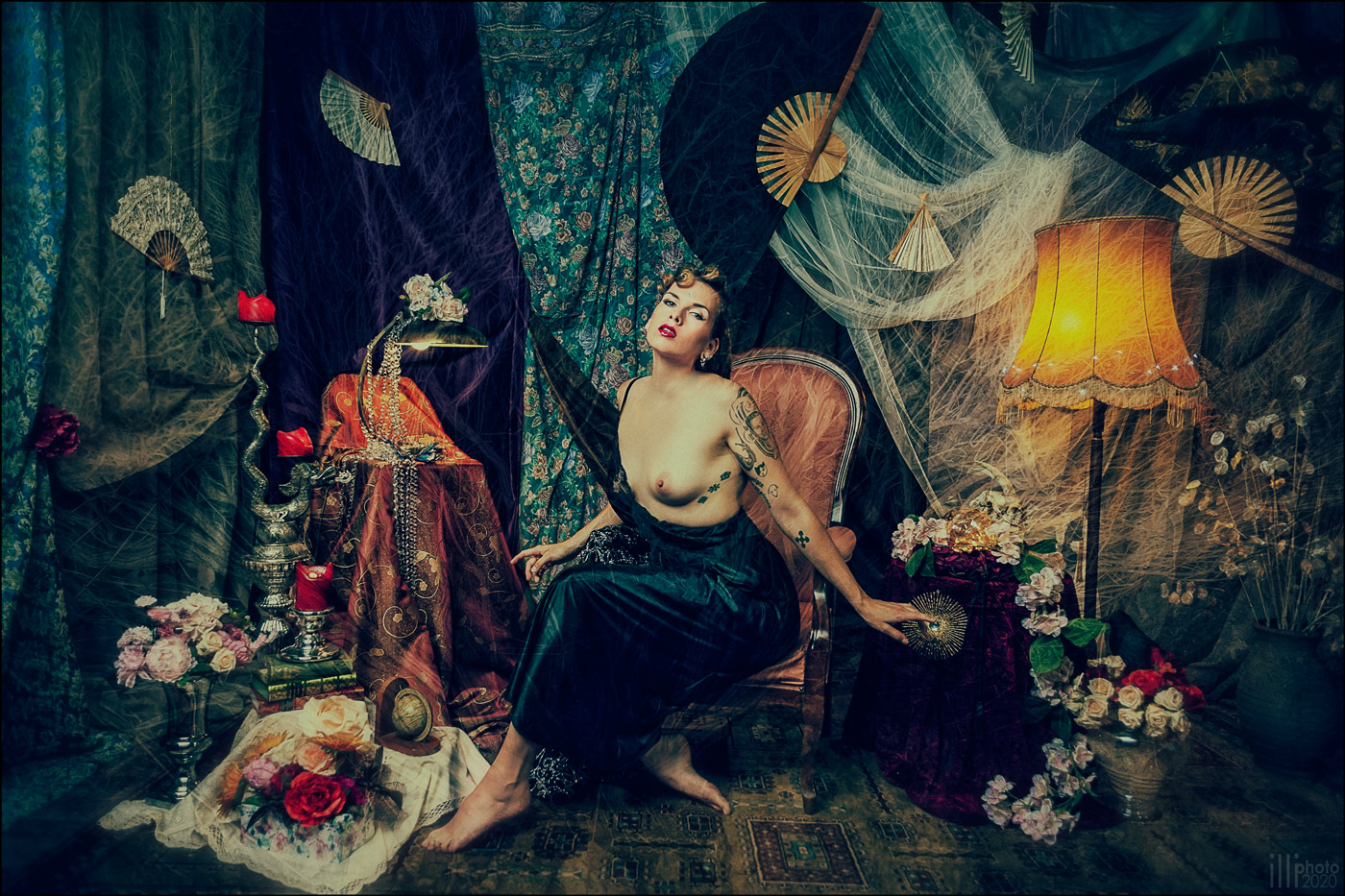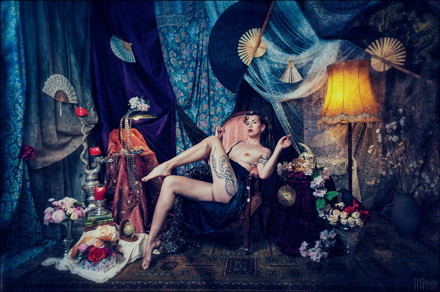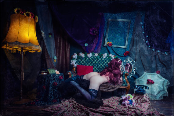 Ein neues Sofa, Tücher und ganz viel Kitsch. Im Mittelpunkt steht die erotische Fotografie, kräftige Farben, ein paar Texturen in der Bildbearbeitung und viele Ideen.