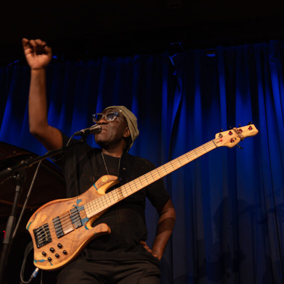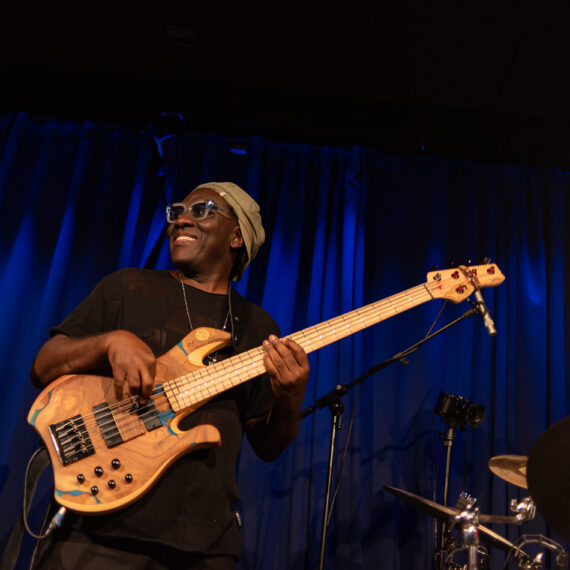 Richard Bona ist ein kamerunischer Jazz-Bassist und Sänger. Er hat mit Jazz-Größen wie Joe Zawinul, Pat Metheny und Chick Corea gespielt. Gestern mit eigenem Trio im Berliner ZigZag-Jazzclub.